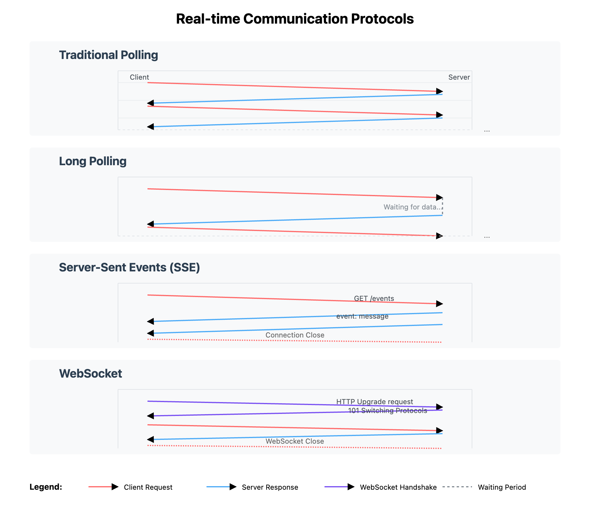 실시간 통신 방식 비교 : Polling, Long Polling, Server Sent Event, WebSocket 본문