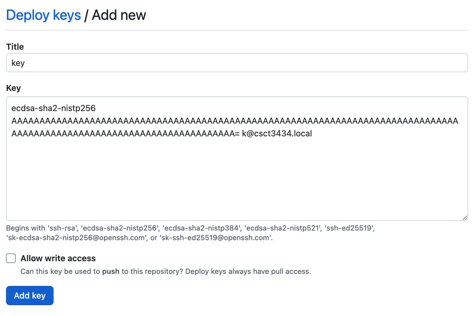 - [Repository Settings] > [Deploy keys] -> [Add deploy key] 선택