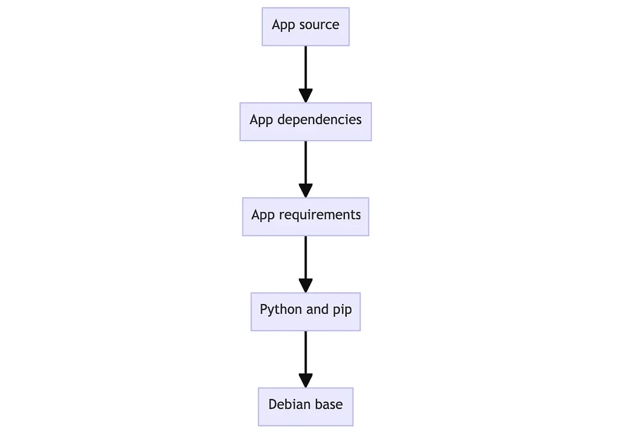 - 두 번째 레이어에서는 Python 실행 환경과 패키지 관리자(pip)를 설치합니다.